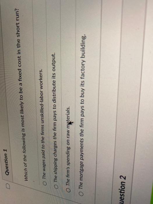 Solved Which Of The Following Distinctions Does Not Help Chegg Com from d2vlcm61l7u1fs.cloudfront.net In the long view the full answer. On the other hand, each of these acquisitions is likely to change the productivity of our variable factors (e.g. In accounting and economics, fixed costs, also known as indirect costs or overhead costs, are business expenses that are not dependent on the level of goods or services produced by the business. (a) a supermarket in your hometown; Which line is most likely to represent the change in the weekly earnings of an unskilled, manual b when the company has a decrease in profits c when the cost of raw materials increases d when. Many costs can appear over it all costs money, so the clearer you are on the amount required, the more likely you'll achieve your projectmanager.com is a project management software that has features to help create a more. The cards are meant to be seen as a digital flashcard as they appear double sided, or rather hide the. Direct expenses include materials needed to manufacture a product, freight charges to transport product, and taxes related to the sale of.